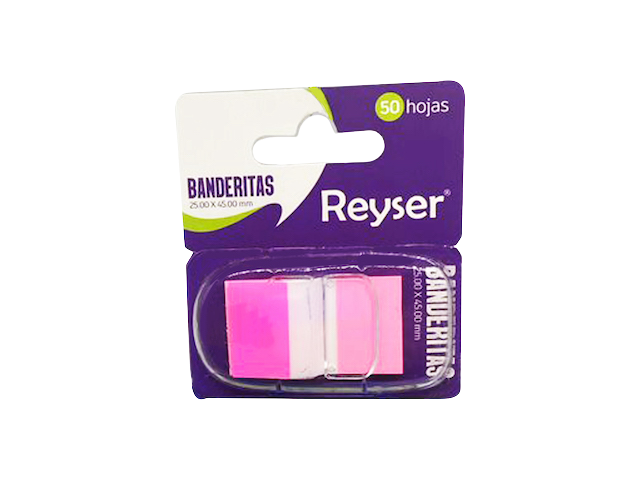 BANDERITA ADHESIVA : C/D: RECTANGULAR MED: 45.00 X 25.00 mm CONT: 50 HOJAS COL: ROSADO NEON G.F: 12 MESES BLISTER X 1 TACO REYSER R100337-R R100337-R