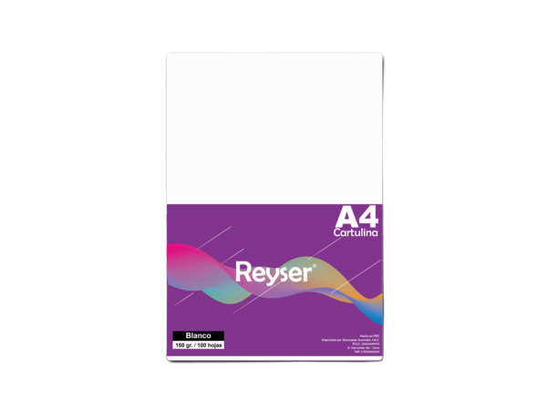 CARTULINA : T/ESCOLAR TAM: A4 MED: A4 G: 150 gr COL: BLANCO G.F: 12 MESES PAQUETE X 100 HOJAS REYSER ESCOLAR R100445
