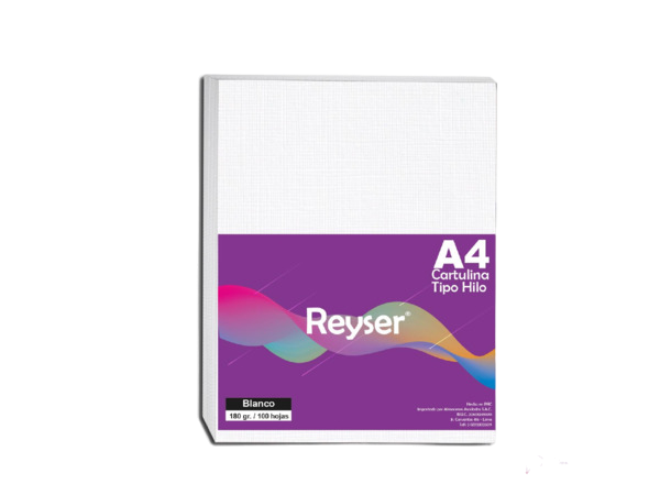 CARTULINA : T/HILO TAM: A4 MED: A4 G: 180 gr COL: BLANCO G.F: 12 MESES PAQUETE X 100 HOJAS REYSER R100872 R100872