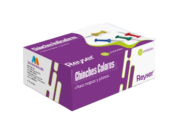 CHINCHE : T/INDICADOR C/D: CABEZA COLORES COL: AZUL/ROJO/AMARILLO/VERDE/BLANCO G.F: 12 MESES CAJA X 50 UNIDADES REYSER CHINCHES INDICADORES X?50?UND R100868