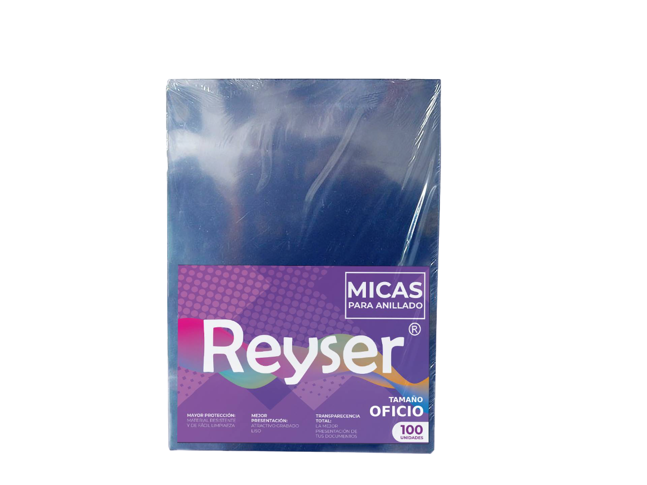 FUNDA PORTAPAPEL : T/MICA D/PLASTICO TAM: A4 CAP. MAX: NO APLICA COL: CRISTAL G.F: 12 MESES PAQUETE X 100 UNIDADES REYSER MICA PARA ANILLADO PC-R100711