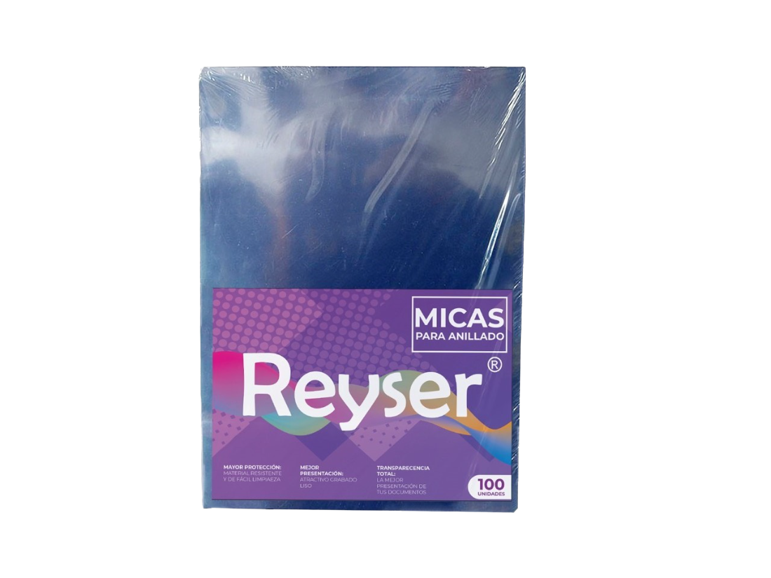 FUNDA PORTAPAPEL : T/COBERTURA D/PLASTICO TAM: A4 CAP. MAX: NO APLICA COL: CRISTAL G.F: 12 MESES PAQUETE X 100 UNIDADES REYSER MICA PARA ANILLADO R100711