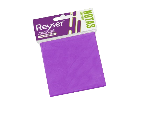 NOTA : T/ADHESIVO C/D: CUADRADO L: 7.50 cm A: 7.50 cm CONT: 50 HOJAS COL: PURPURA NEON G.F: 12 MESES UNIDAD REYSER R101011 R101011