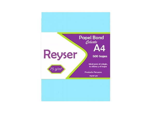 PAPEL BOND : T/FOTOCOPIA-ALISADO TAM: A4 G: 75 gr COL: CELESTE G.F: 12 MESES PAQUETE X 500 HOJAS REYSER R100215 R100215