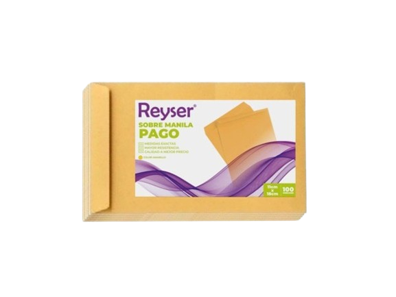 SOBRE : T/MANILA D/PAPEL TAM: PAGO COL: AMARILLO G.F: 12 MESES PAQUETE X 100 UNIDADES REYSER PC-R100487