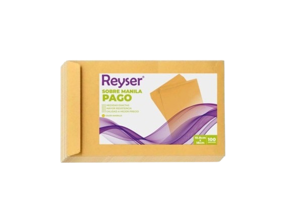 SOBRE : T/MANILA D/PAPEL TAM: 10.80 X 18.00 cm COL: AMARILLO G.F: 12 MESES PAQUETE X 100 UNIDADES REYSER PC-R100489