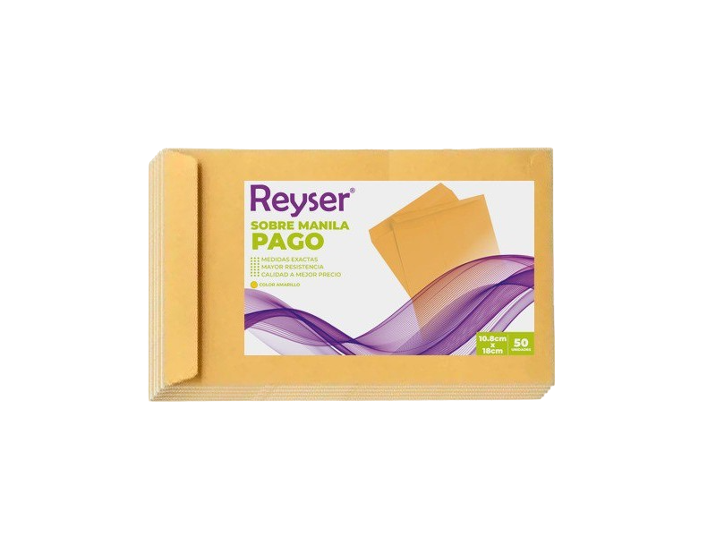 SOBRE : T/MANILA D/PAPEL TAM: PAGO COL: AMARILLO G.F: 12 MESES PAQUETE X 50 UNIDADES REYSER R100486