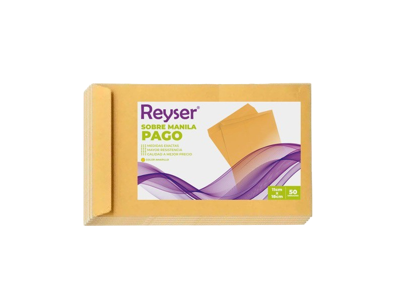 SOBRE : T/MANILA D/PAPEL TAM: 10.80 X 18.00 cm COL: AMARILLO G.F: 12 MESES PAQUETE X 50 UNIDADES REYSER R100488