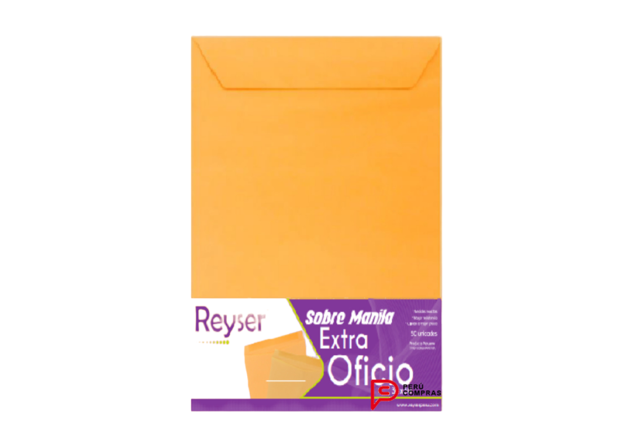 SOBRE : T/MANILA D/PAPEL TAM: EXTRA OFICIO COL: AMARILLO G.F: 12 MESES PAQUETE X 50 UNIDADES REYSER R100767